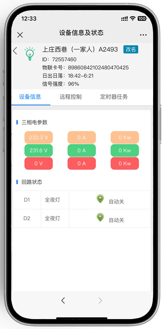 - 淘寶遠程開關(guān)定時器:每天調(diào)整開關(guān)燈時間,無法跟隨日出日落時間執(zhí)行,無法依照光照度開燈,無電流電壓數(shù)據(jù),無故障上報